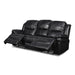 The Flynn motion collection is a stylish and comfortable addition to any living space. The sofa, console loveseat, and glider recliner are all upholstered in a sleek Premier Black performance fabric that is made of 80% polyester and 20% faux leather. The hardwood and plywood frame ensures durability and support, while the sinuous spring "no sag" deck support and 72 pocketed spring cushion provide comfortable seating. The memory foam topper adds an extra layer of comfort, and the polyester fiber fill backs provide added support.For added convenience, the Flynn motion collection a 7 way lighted base, illuminated cupholders, and a task light for reading or other activities. There is also a storage drawer for organizing small items. The recliner is available in both manual and powered footrest options, allowing you to choose the one that best fits your needs.