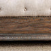LYSANDRA Beige/Rustic Natural Tone Cal.King Bed, 110 1/4"L X 84"W X 71 1/2"H, 277.8lbs. Luxury and style blends together to make this beautiful contemporary sleigh bedroom set. The fabric padded headboard and footboard provide warm comfort and paired button tufted details offer an extravagant finish. Case goods feature antique handles a nd the rustic natural wood finish creates a soothing bedroom environment. Make your sleeping area feel like a luxurious getaway with this extraordinary bedroom set! Features: Transitional Style Sleigh Bed Button Tufted Fabric Headboard and Footboard Intricate Wood Carvings Antique Inspired Drawer Pulls Felt-lined Top Drawers Solid Wood, Wood Veneer, Others Rustic Natural Tone Finish