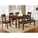 In both casual and formal settings, this beautiful bench welcomes you to refined contemporary dining space with solid wood in a rich dark cherry finish. With squared tapering legs, a clean and crisp silhouette brings focus to its bold wooden construction.