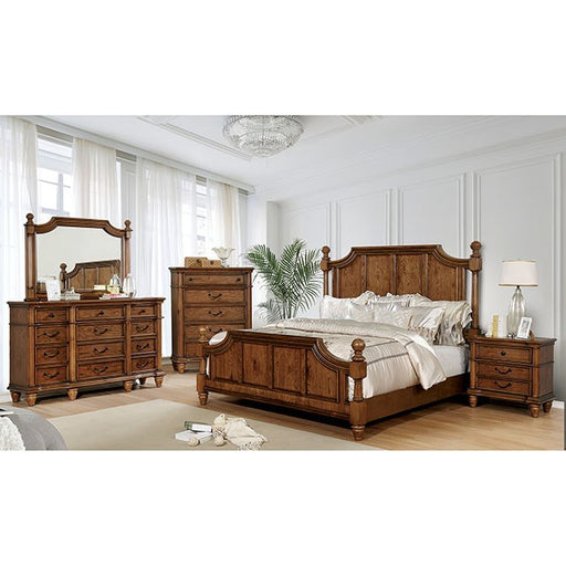 FOA WestClassic, almost farmhouse, in its appearance, this bedroom collection showcases how even natural tones can pop out in a room. The paneled bed is he...