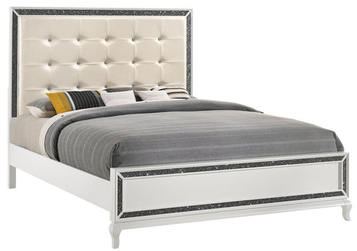 New ClassicValentino Collection by New Classic Furniture White finish Tufted upholstery on headboard LED lighting Mirror trim Embossed detailing on wood Turn...