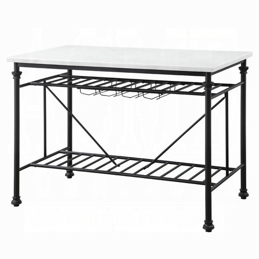 ACME WestGive off a light and airy feel to a compact cooking space. The Mera Kitchen Island features a artificial stone top paired with a metal slatted shel...
