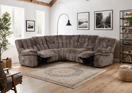 FOA WestTransitional Dark Brown Fabric, Metal, Foam Glider Recliner Webbing Back Frame Construction Rounded Wide Track Pillow Top Arms Console w/ Power Ou...
