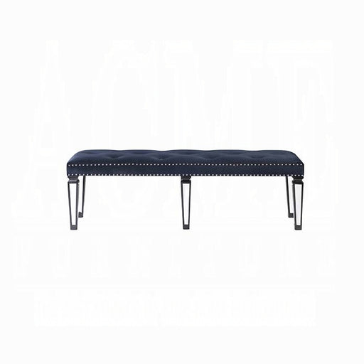 ACME WestFeatures • KD, Armless Bench (Backless)• Stationary Seat: Standard Dining Height• Padded SEAT: Blue Velvet w/Crystal-like Button Tufted (Padded ...