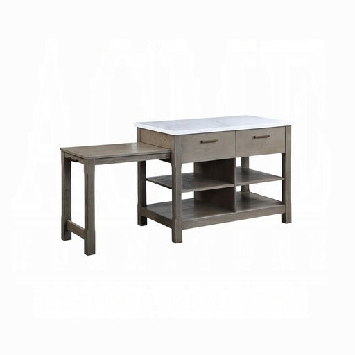 ACME WestRectangular Kitchen IslandStorage: 2 Drawers & 2 Tier ShelvesFull Extension Drawer GlideSide Metal GlideMarble Top Wooden Turned LegFeatures• K...