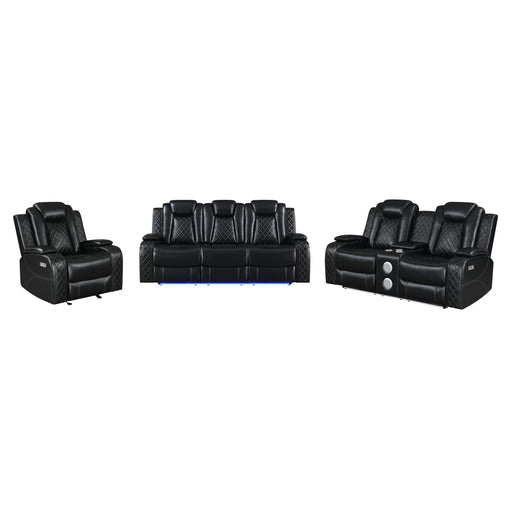 New ClassicOrion Collection by New Classic Furniture Black finish Leather upholstered frame Reclining mechanism Console with cupholders Storage arms Wireless...