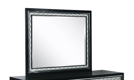 Valentino Collection by New Classic Furniture Black finish Hardwood solids and veneers Mirrored accent Lighted