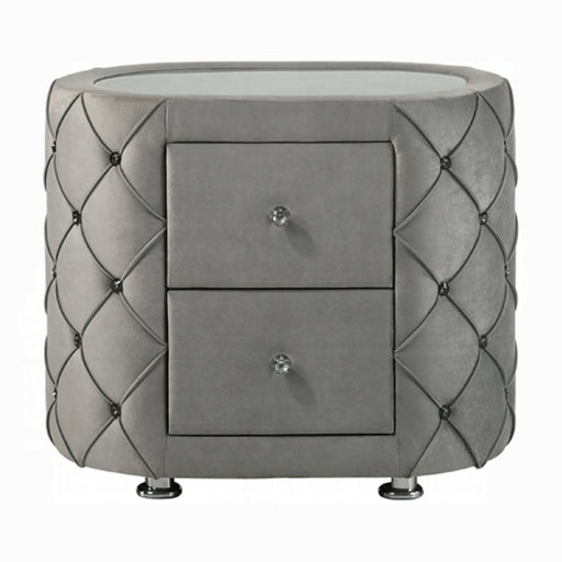 ACME WestACME Leonora Nightstand, Vintage Platinum, 32" x 20" x 30"H Materials: Wood, Wood Veneer, Composite Wood