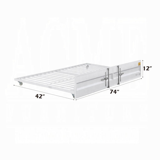 ACME WestFeatures• Trundle Bed (Twin Size)• Slat System Included (20)• NO Storage• Features: Recessed Front Panel, Cargo Container S...