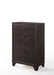 ACME Madison Chest, Espresso, 31" x 16" x 47"H, 86lbs. The Madison chest is finished in a rich espresso color with 5 drawers. The generous sized case piece is ideal for storing your clothing. All drawers have English dovetail with center metal glides. Features: - 5 Drw - Casegood Drawer: Glide Center Metal, Dovetail English Front & Back (No Felt) Materials: Wood, Veneer, Composite Wood