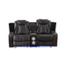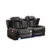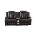 JOSHUA LEATHER CONSOLE LOVESEAT W/ PWR FR & HR-DK BROWN