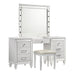 The Valentino bedroom collection is a stunning and elegant addition to any bedroom. The hardwood solids and veneers are finished with an embossed inlay and a beautiful silver, black, or white finish, adding a touch of glamour to the room. The collection includes a variety of pieces, all constructed with durability and functionality in mind. One of the standout of the Valentino collection is the inclusion of a lighted mirror and a lighted headboard. These provide a soft and ambient glow in the evening, creating a relaxing atmosphere in the bedroom. The MDF drawers feature English dovetail construction and full extension, providing ample storage space. The 80% PU/20% Cotton fabric adds a soft and comfortable touch to the collection, making it a pleasure to use every day.
